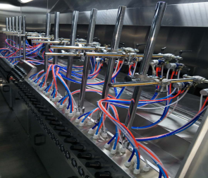 地軌式自動(dòng)噴涂線介紹地軌式自動(dòng)噴涂線也叫固定噴槍噴涂線或spindle自動(dòng)噴涂線,原理就是把噴槍固定起來,根據(jù)工藝要求進(jìn)行噴涂。其功能集地面自動(dòng)輸送線,固定自動(dòng)噴涂,自動(dòng)烘干T等一體化系統(tǒng),并結(jié)合無塵凈化車間,恒溫控制,廢氣處理系統(tǒng)組成,可以根據(jù)需求設(shè)計(jì)兩涂兩烤,三涂三烤,四涂四烤,再加上UV固化設(shè)備。地軌式自動(dòng)噴涂線特點(diǎn)與優(yōu)勢(shì):1.起到靜電除塵,噴涂、烘干、UV固化自動(dòng)噴涂流水的功能,適合批量連續(xù)生產(chǎn),產(chǎn)量高,噴涂均勻。2.輸送鏈條與軌道接觸點(diǎn)配置軸承,配合精準(zhǔn)的軌道,運(yùn)轉(zhuǎn)時(shí)輕快平穩(wěn)不抖動(dòng),3.靜電除塵系統(tǒng),進(jìn)口高要靜電發(fā)生器,離子風(fēng)嘴可上下前后機(jī)械式調(diào)節(jié),可配合產(chǎn)品大小不同而變化,加上工件自動(dòng),除塵無360度死角。4.固定式自動(dòng)噴槍可用于步進(jìn)是或者聯(lián)系的在線噴涂,及簡單又實(shí)用。采用工件高速自動(dòng)噴涂,行程及速度可調(diào)節(jié),靈活性大,無死角。5.水簾環(huán)保噴房設(shè)計(jì),氣流順暢潔凈,噴房室內(nèi)導(dǎo)流板機(jī)擾流板的精心配置,讓亂流遠(yuǎn)離工件,并快速循環(huán)利用。6.UV固化室內(nèi)設(shè)都說進(jìn)口等,任意調(diào)節(jié)照射距離與角度。可以任意選擇燈工作數(shù)量,根據(jù)照射強(qiáng)度選擇,工件自動(dòng)旋轉(zhuǎn)設(shè)計(jì),保證了工件照度均勻。好了,以上就是有關(guān)地軌式自動(dòng)噴涂線介紹,大家學(xué)會(huì)了嗎?
